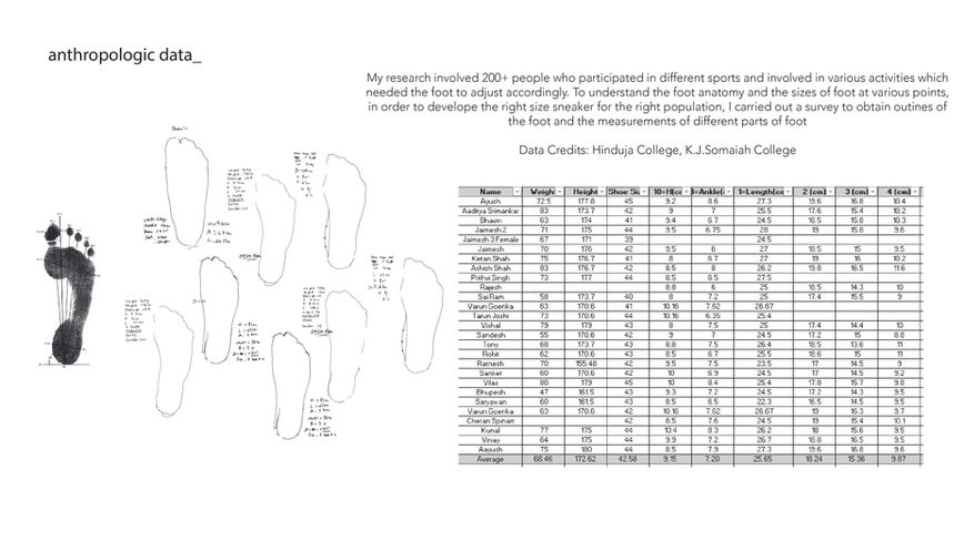 As the athleisure world grows, we are reliant on external brands for comfort and durability which may not fit the average Indian consumer's want. This is an effort to research into Indian foot demographics and build a sneakers for the Indian market through data and science.